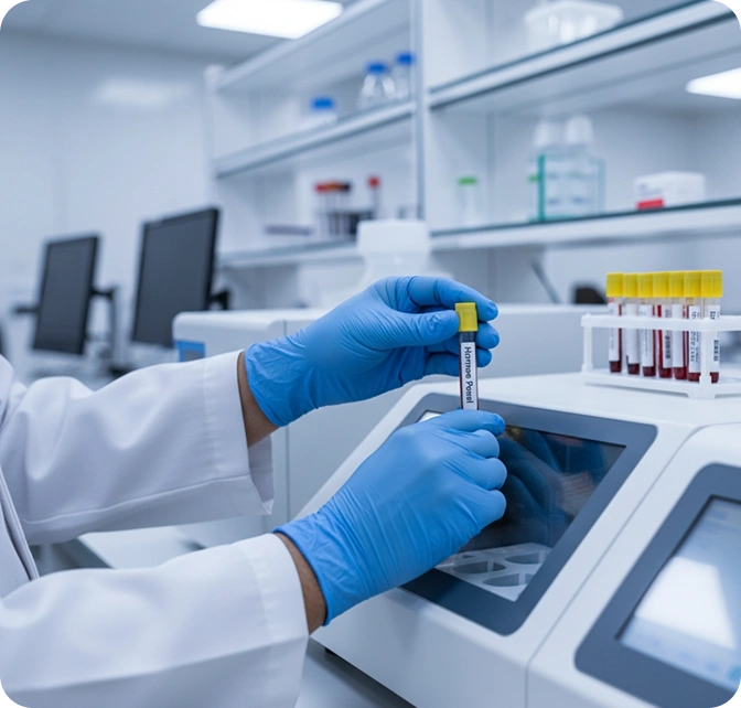 Hormonal evaluations are performed using advanced immunoassay analyzers that provide high accuracy, sensitivity, and consistent results across all samples. The process requires a simple blood sample and helps detect underlying hormonal irregularities that can cause fatigue, mood swings, weight changes, hair loss, or fertility challenges affecting quality of life.