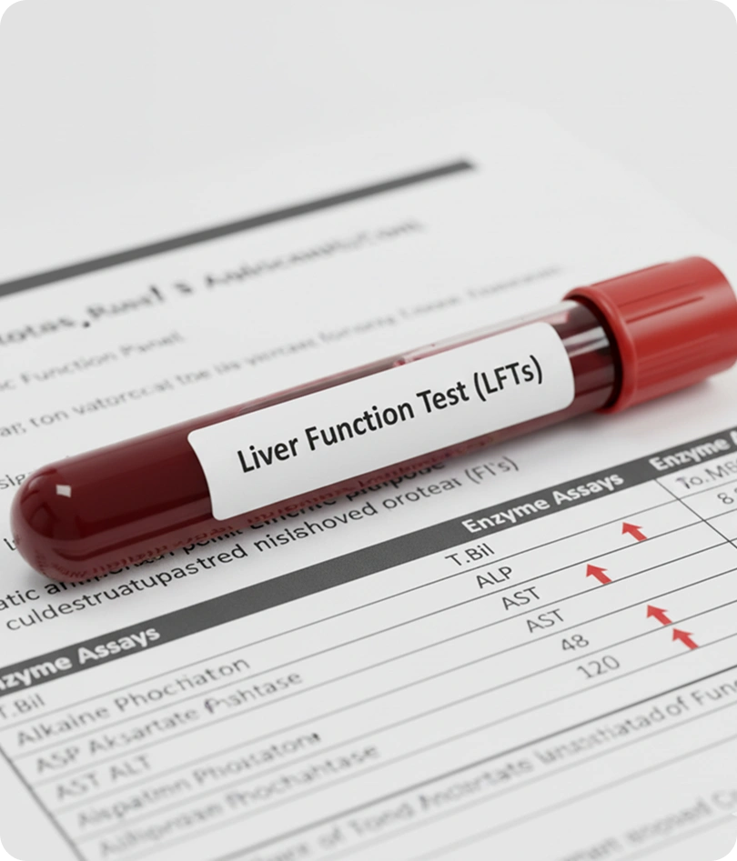 Every sample is tested using advanced biochemical analyzers to ensure precise, reproducible, and clinically reliable results. The LFT helps identify early signs of hepatitis, fatty liver disease, jaundice, cirrhosis, or alcohol-induced liver stress before they develop into serious, irreversible conditions requiring intensive treatment.