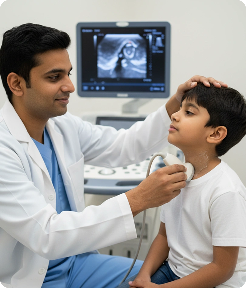 At Dr. Ashwini’s Scans and Labs, every pediatric soft tissue scan is conducted using high-definition ultrasound systems specially designed for children’s anatomy. These scans provide exceptional clarity in visualizing glands, muscles, and superficial structures, supporting accurate and confident diagnosis. Each procedure is quick, gentle, and completely non-invasive, allowing infants and young children to remain calm throughout.